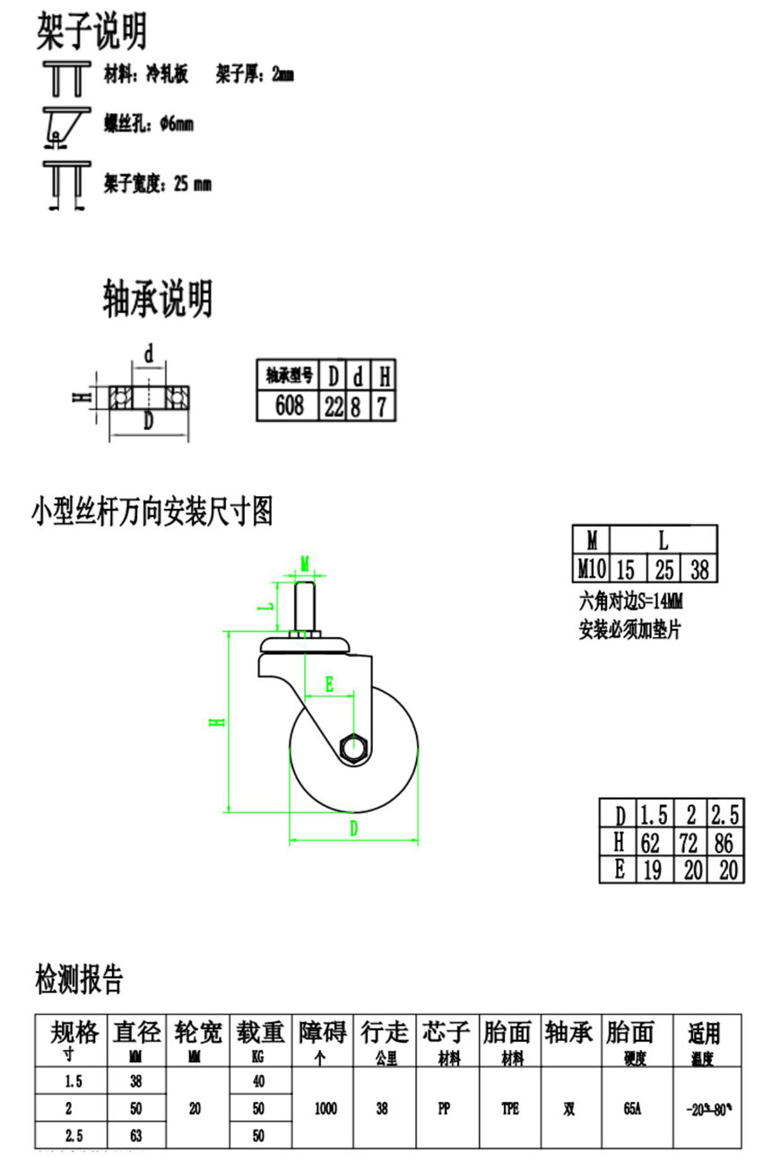 小型2寸絲杆無(wú)軸(zhóu)承萬向腳輪