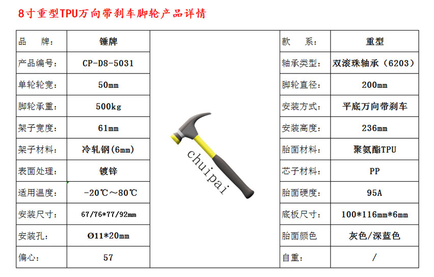 8寸重型(xíng)萬(wàn)向帶刹車腳輪