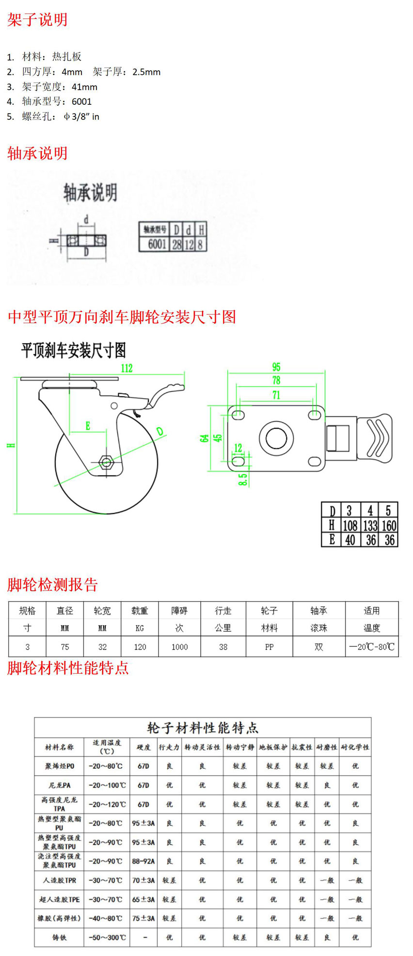 中型(xíng)5寸(cùn)萬(wàn)向帶刹車腳輪
