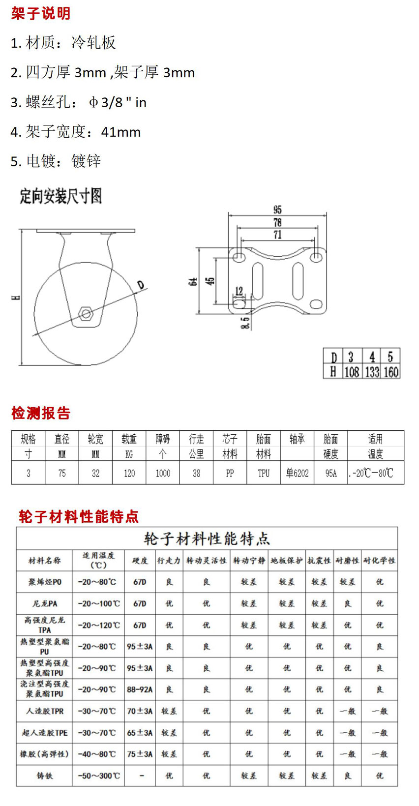 中型3寸定向單軸承腳輪