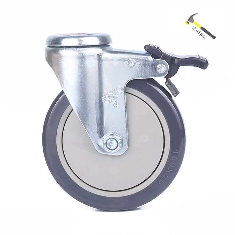 4寸輕型空(kōng)頸TPU萬向帶刹車腳輪