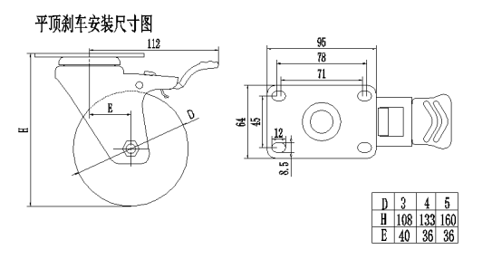 中(zhōng)型5寸(cùn)萬向(xiàng)帶刹車腳(jiǎo)輪