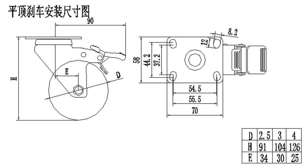 輕型3寸萬向帶刹車