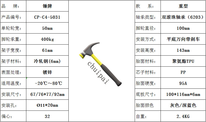 4寸重型TPU萬向帶刹車腳輪產(chǎn)品詳情